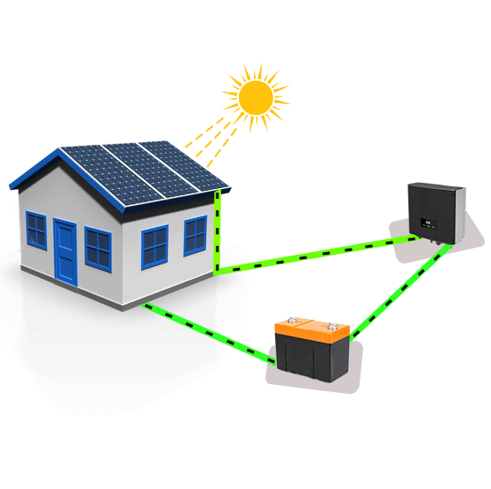 Off-grid systems work independently of the grid but have batteries which can store the solar power generated by the system. The system usually consists of solar panels, battery, charge controller, grid box, inverter, mounting structure and balance of systems.